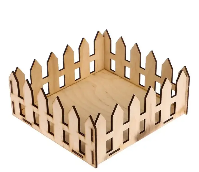 Кашпо дер д/цветов "Заборчик" 15х15х7см фанера 3мм разборн. б/покр. Z0003, , шт