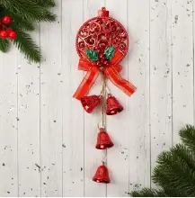 Украшение новогоднее "Уютная сказка" колокольчики узорный шар, 10х27 см, красный 9692782, , набор