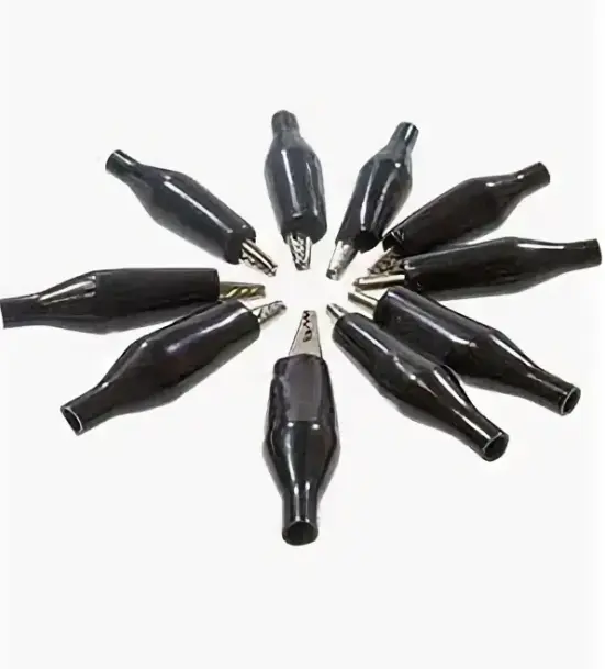 Зажим "крокодил" 3 КИ 10А 56мм в изоляции черный (10шт. в уп), , шт