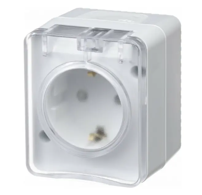 Розетка ATLASDESIGN Profi54 с зазем. со шторками 16А 250В белый IP54, , шт