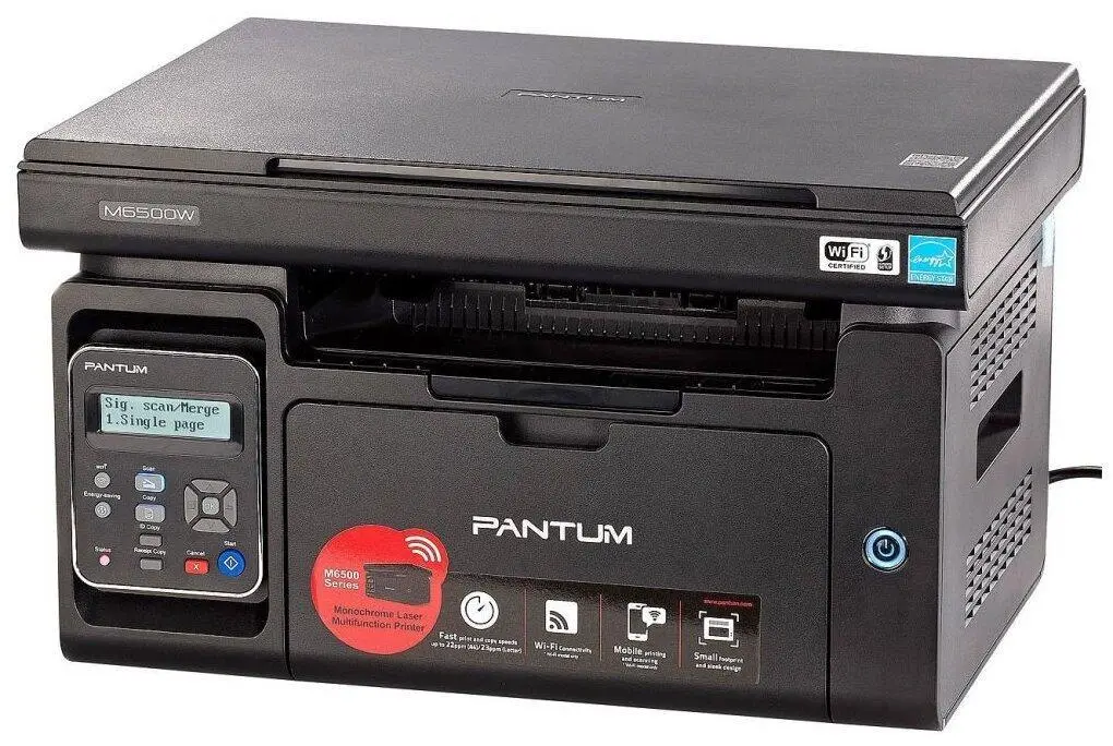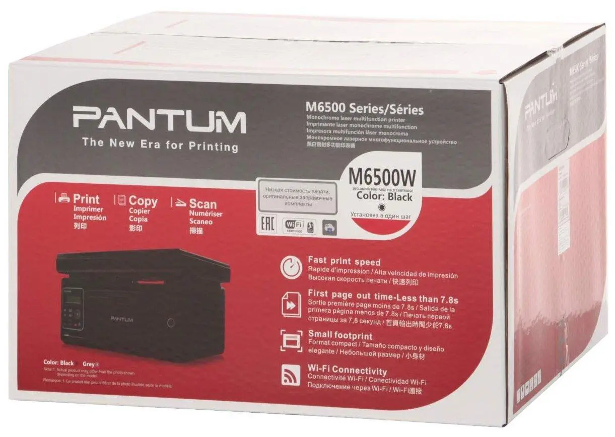 USB кабель для подключения к компьютеру, МФУ Pantum M6500W, гарантийный талон, краткое руководство по установке, перезаправляемый), стартовый картридж PC-211 (1600 страниц, шнур питания |
