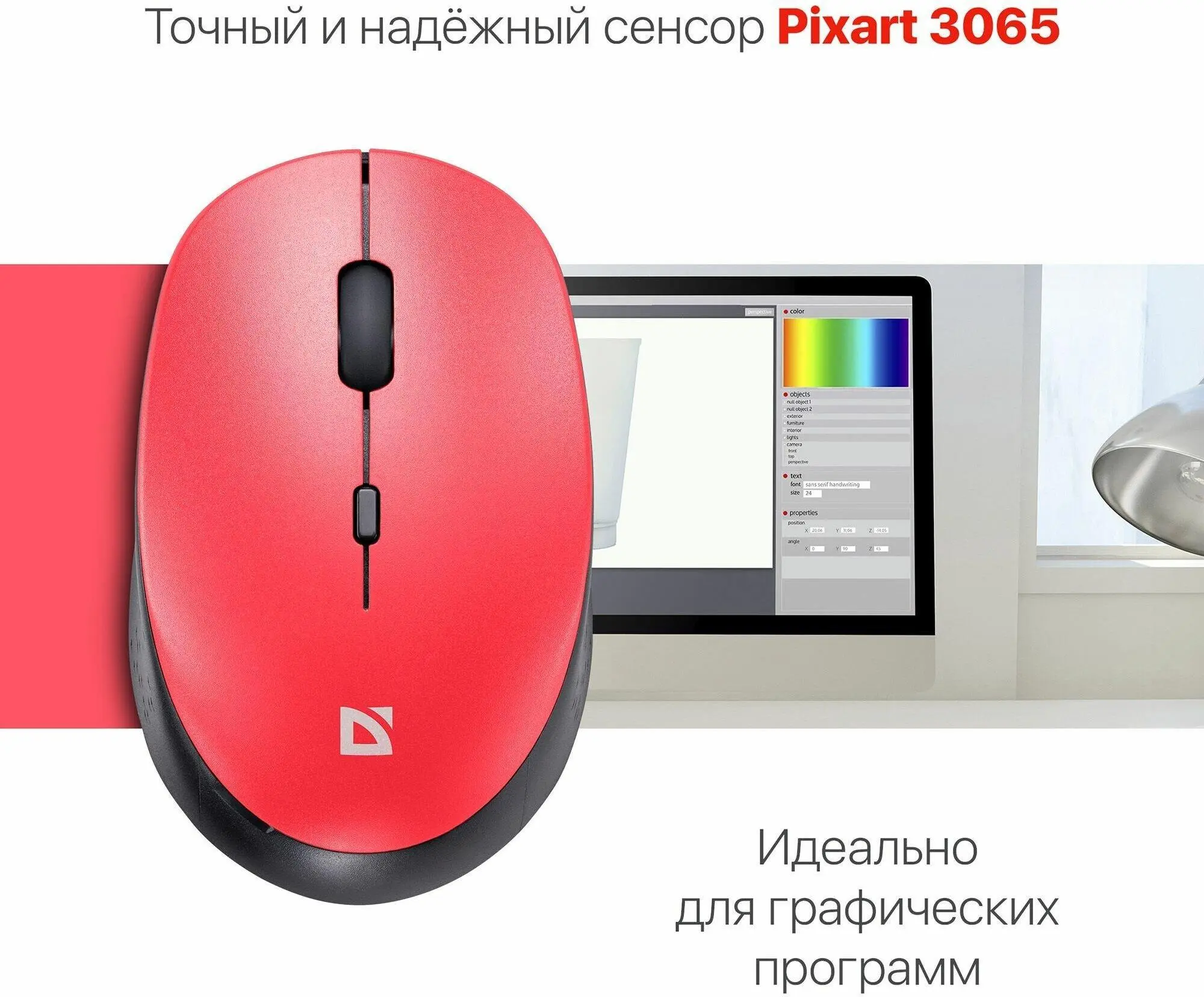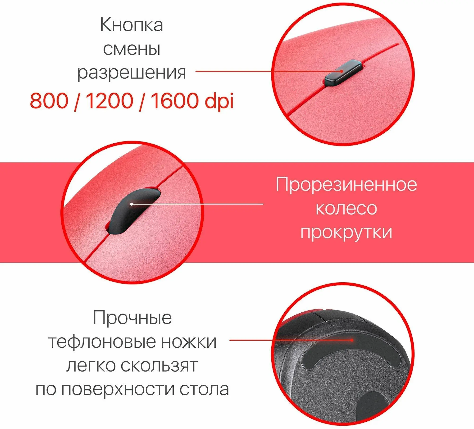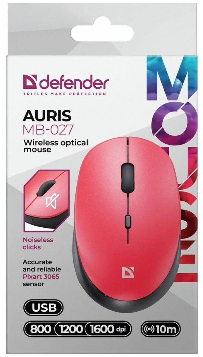 Мышь Defender Auris MB-027 красный 4D 800-1600dpi бесшумн оптич.беспровод