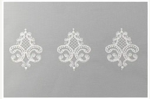 - Нежная вышивка по всему полотну плавно переходит к низу тюля более плотным купоном .