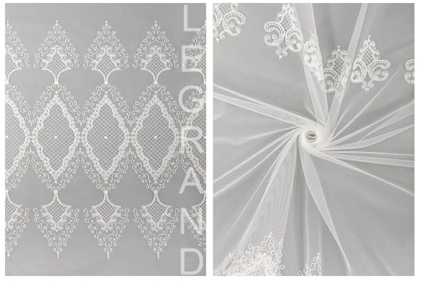 - Нежная вышивка по всему полотну плавно переходит к низу тюля более плотным купоном .