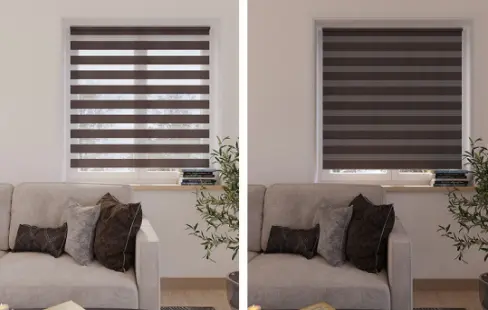- Режим «День». Полосы полотна чередуются: светопроницаемые и блокирующие свет.