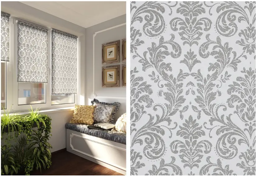 - Рулонные шторы серии «Дамаск» хорошо смотрятся в классическом или современном интерьере.