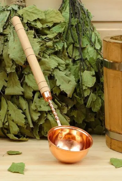 Ковш медный 0,45л д12см h7см, дерев.ручка 37см, , шт