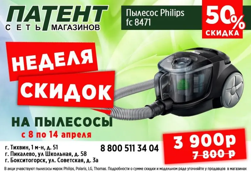 С 8 по 14 апреля - скидки до 50% на пылесосы