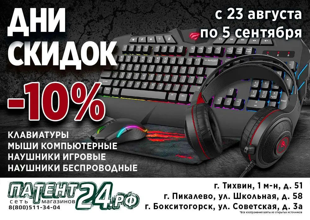 Скидка 10% на клавиатуры и мыши, наушники игровые и беспроводные