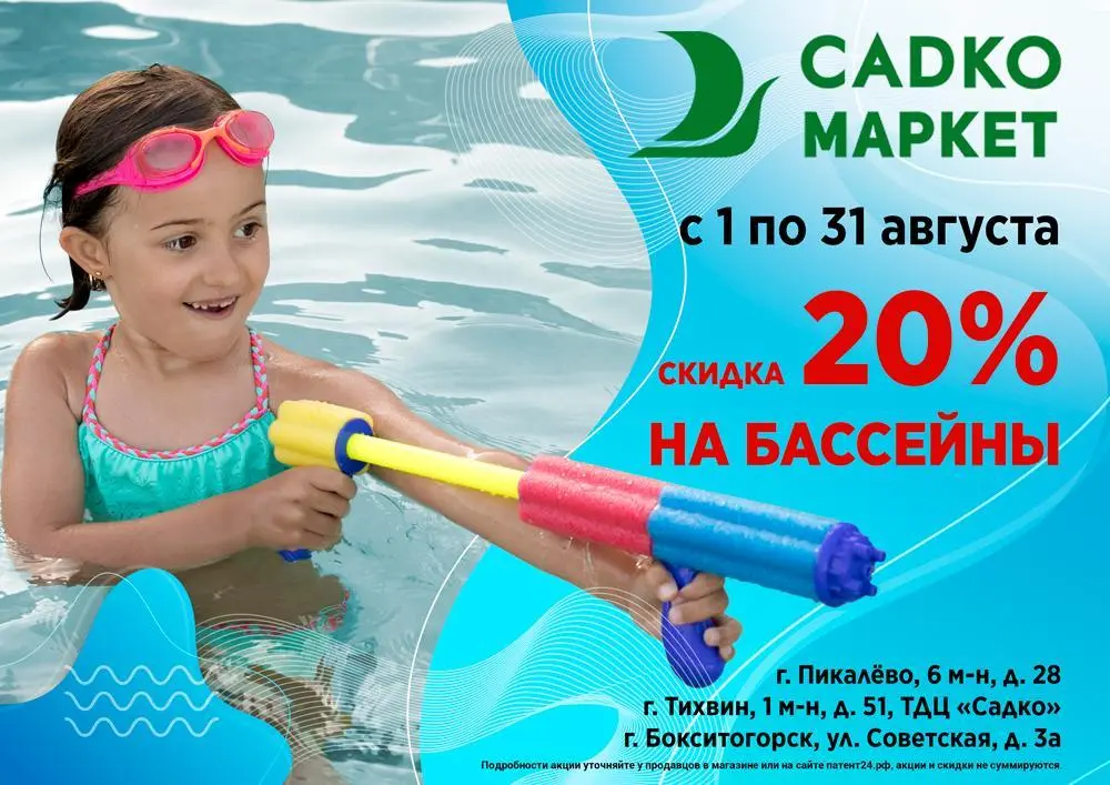 С 1 по 31 августа 2022 скидка -20% на бассейны