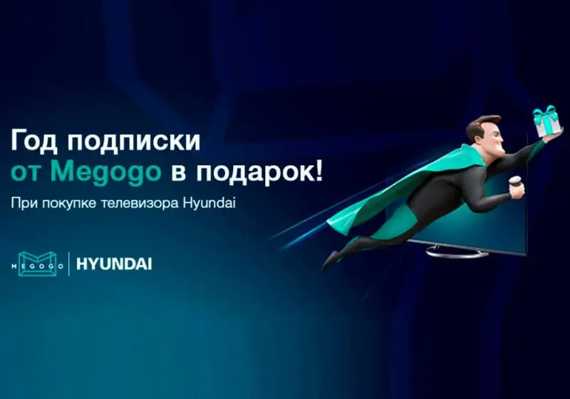 с 1 февраля по 31 марта 2020 при покупке телевизоров* Hyundai в магазинах сети Патент24.рф - год подписки на Megogo